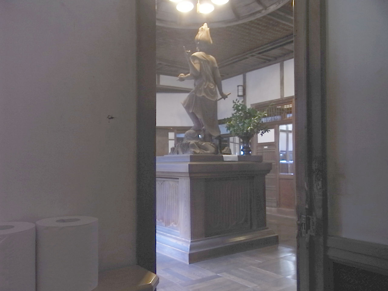 トイレの紙様ごしのトイレの神様のお背中。